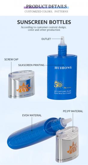 60ml small luxury sunscreen cosmetic PE  bottle  with 5 layers add UV sense material, suitable for sun block products!Welcome to quote now!
